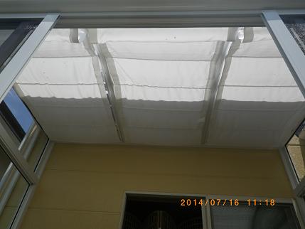 これはサンルームの屋根です。 日よけ用のカーテンが標準装備となっていて、冬にはカーテンをたためるようになっています(^-^)