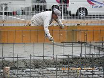 10月24日 鉄筋工事がほぼ完了しました! この状態で(財)住宅保証機構さんが鉄筋検査に来てくれます。 検査後、いよいよコンクリート打設が始まります。 10月25日 打設が始まりました。 10月25日 設計されたコンクリートの厚さを確認しながら慎重に打設を進めていきます。