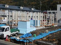 11月13日 組み込んだ土台の中に断熱材(水色)をはめ込み、
